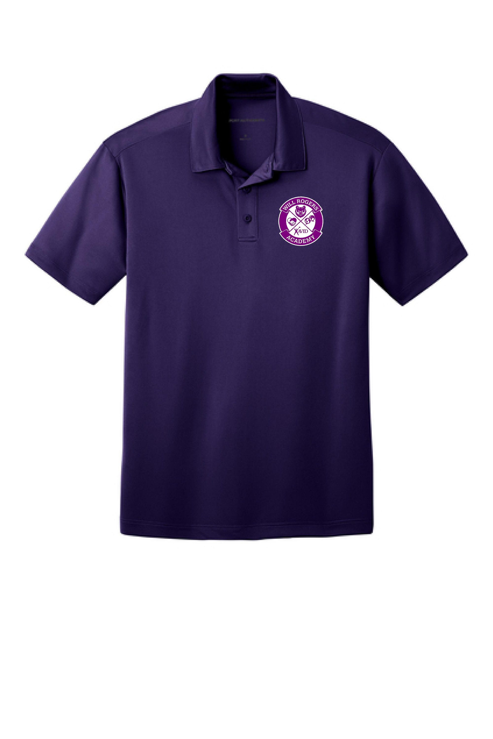 Show your school pride with this Will Rogers Mens Purple Polo dri-fit. featuring a bold graphic of the school logo. Perfect for school spirit and supporters, this comfortable purple polo dri-fit is a must-have for this school year